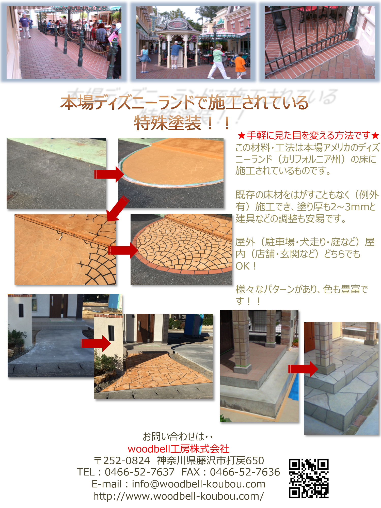 新築・既設のコンクリートに、簡単な施工で美しい床面・壁面を作ることが出来ます。